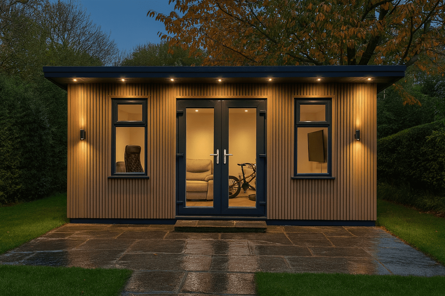 Our garden rooms start from around £1,300 per square metre, fully installed. For example, a 5m x 3m room (15m²) is typically around £19,500, depending on your specification and options.