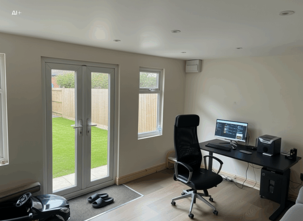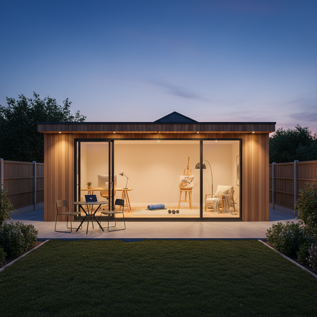 A sleek, insulated garden office designed for productivity and comfort all year round.