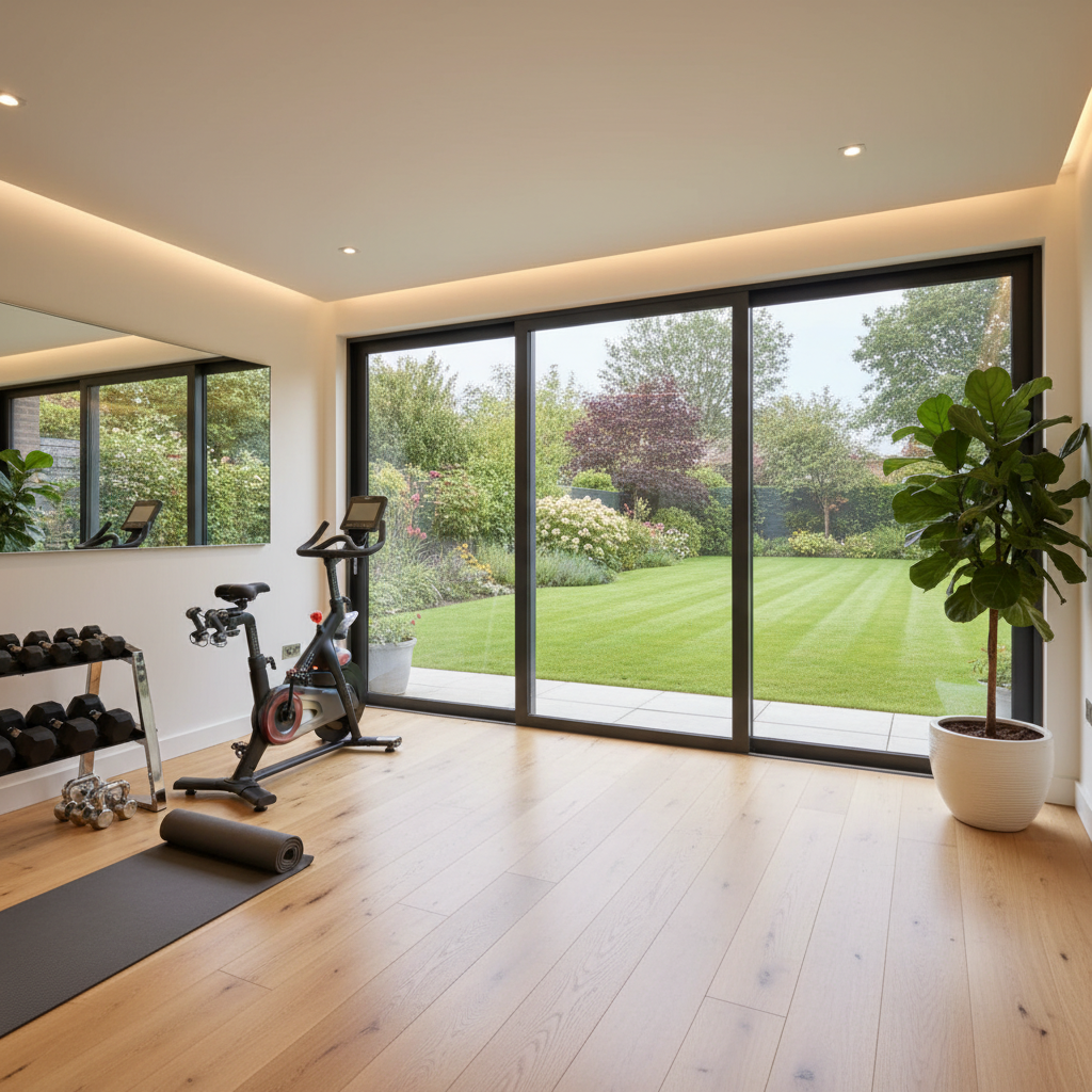 A fully insulated garden gym offering a private and motivating workout environment.